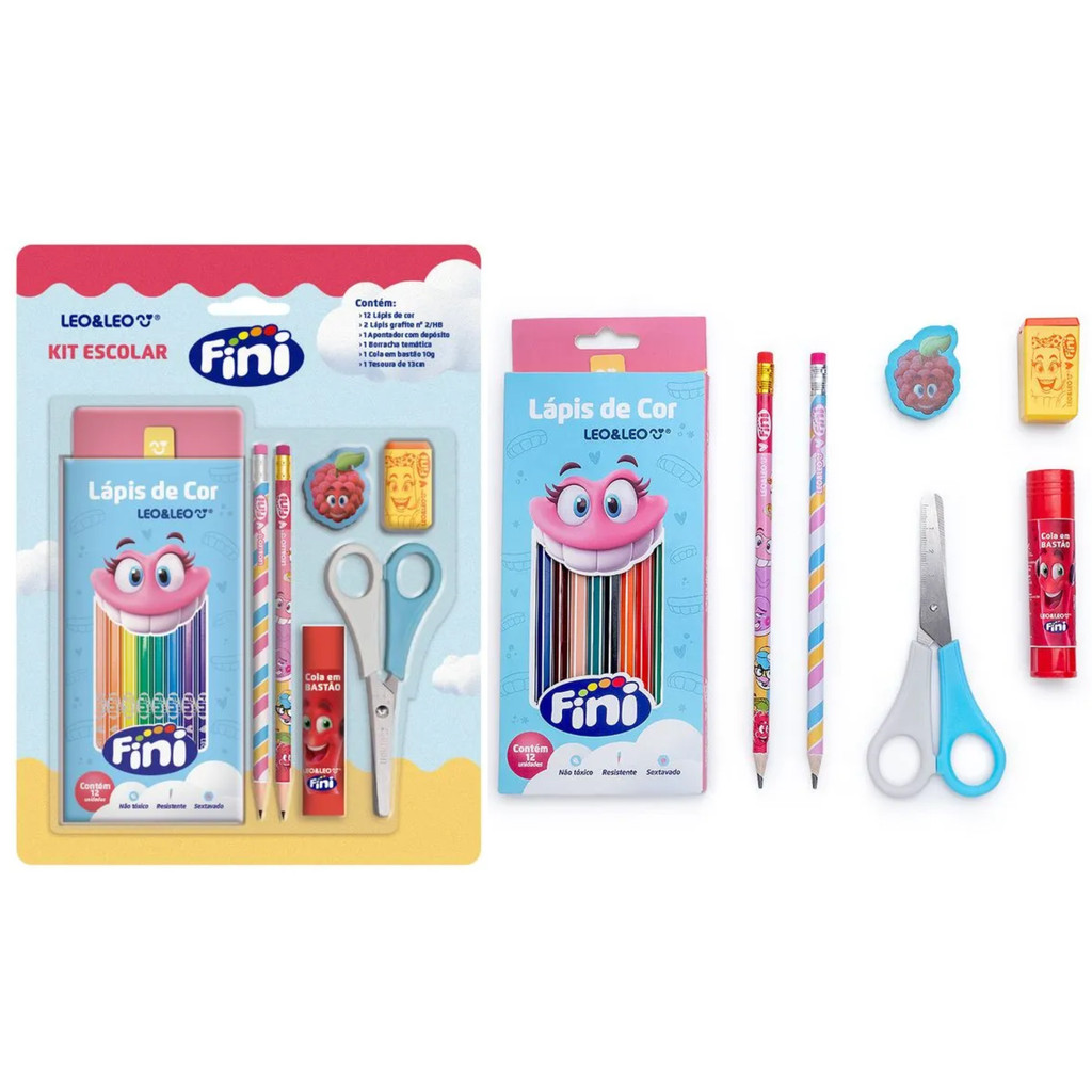 Kit 18 Peças Material Escolar Infantil Completo Fini Com Lápis Borracha Apontador Léo&Léo