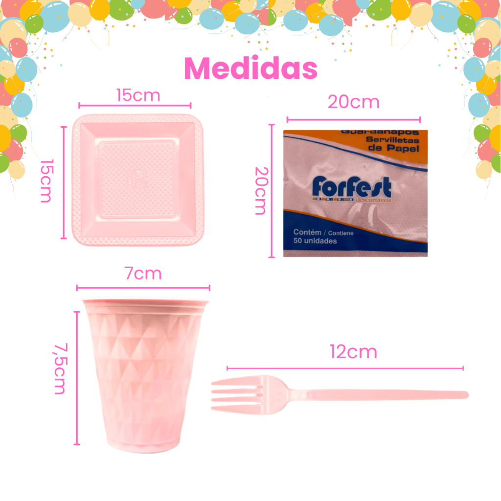 Kit 180 Itens Festa Aniversário Candy Completo Descartável Diamante C/Prato Copo Garfinho Guardanapo