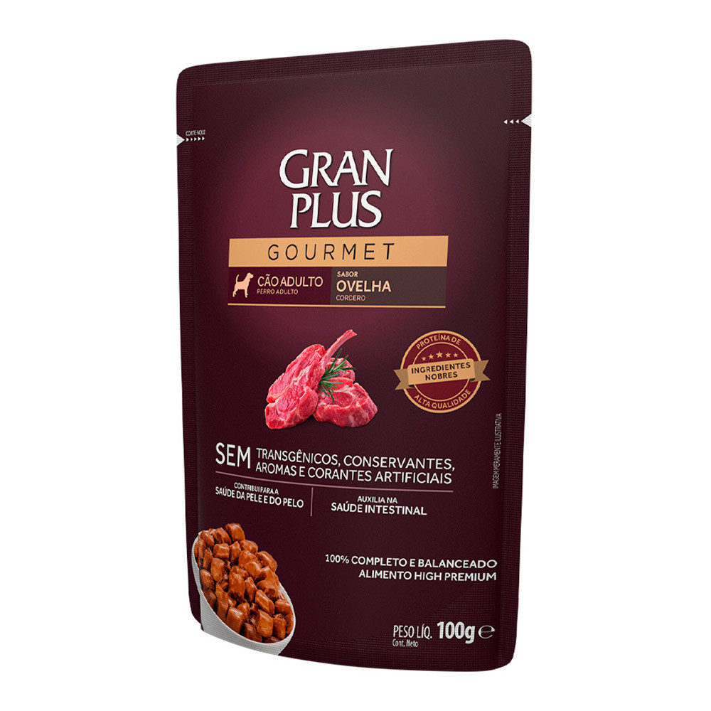 Kit 18un. Ração Úmida Sachê GranPlus Gourmet Cães Adultos Ovelha 100g