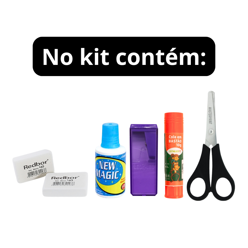 Kit Material escolar com 19 Itens No kit acompanha: 1-Caderno 10 Materias (A capa do caderno sera selicionado em masculino ou feminino) 2- Borrachas tamanho 40 2- Lápis de Escrever (Masterprint) 1- Apontador com Depósito grande 6cm (A cor sera escolhida conforme a disponibilidade do estoque) 4- Canetas Ponta 1mm (Compactor) 1- Tesoura sem Ponta 13cm { será enviado a cor que tivermos no estoque} (Masterprint) 1- Cola Bastão 10g 1- Régua escolar 30cm 1- Corretivo Líquido 18ml 6- Marca Texto { Cores: Azul Verde Amarelo Laranja Rosa Vermelho} (Masterprint) (ATENÇÃO A CAPA DO CADERNO NÃO SERÁ NECESSÁRIAMENTE A DA FOTO, MAS A QULIDADE DO CADERNO E O MODELO SERÁ O MESMO) Embalamos seus produtos com todo respeito e carinho que você merece. Todas as fotos dos nossos produtos são reais. Estamos a disposição para qualquer esclarecimento, nós mande um oii no chat e conheça nosso atendimento Diferenciado! Seu produto será enviado em 24 horas!!!