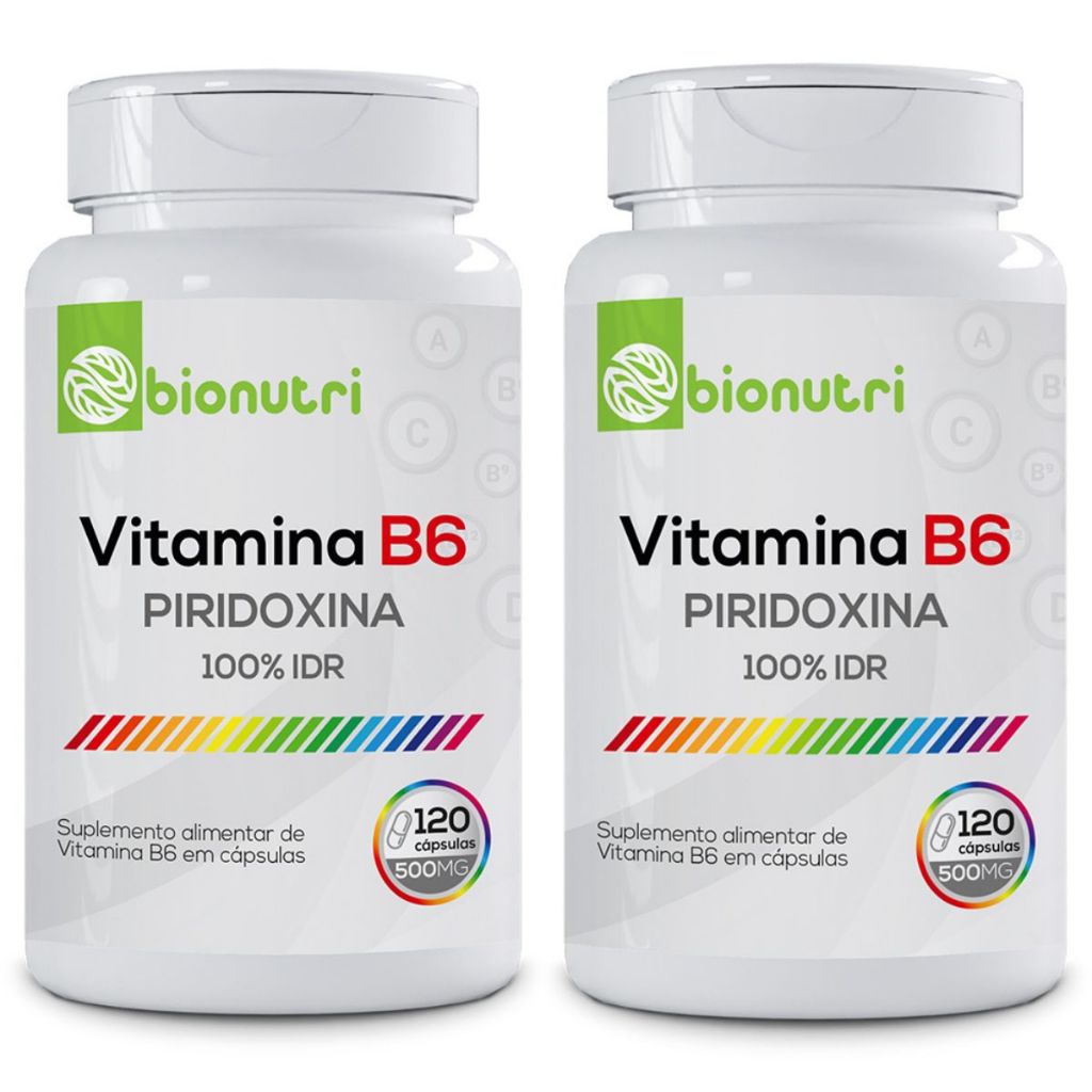 kit 1x3 Vitamina B6 (Piridoxina) 60 a 360 Cápsulas Bionutri Suplemento Alimentar