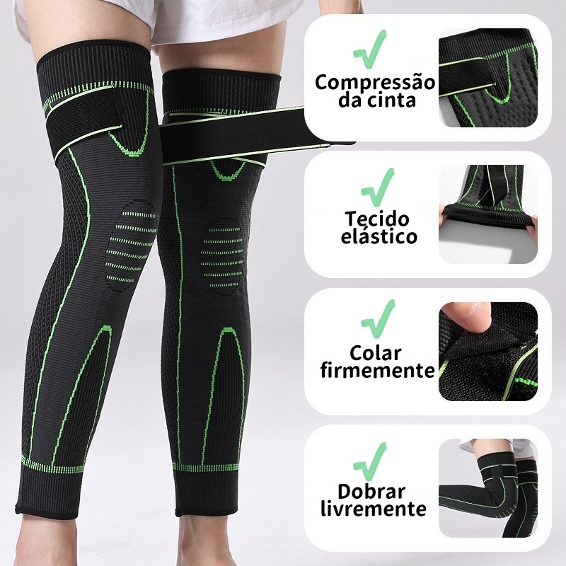 Kit 2/1 Joelheira de Compressão Suporte Alongar Listra Esporte Manga Protetor Elástico Longo Joelheira