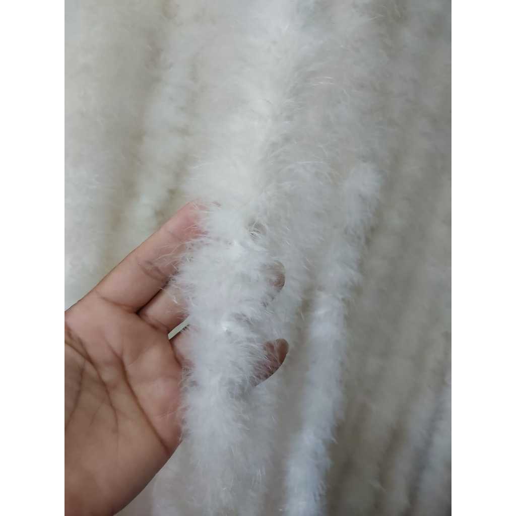 Marabu feito com 2 camadaa de pluma de aves, podendo ser utilizado de de diversas maneiras, as mais comuns são para adornos em festas de modo geral ou roupas, fantasias e acessórios variados kit com 2,3,4,5 Marabus Material: Fibra Natural Comprimento: 1,50 MT Composição: Penugem Natural ATENÇÃO: Na pagina ha loja tera kits com varias outras quantidades