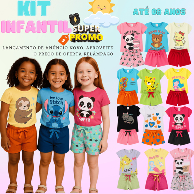 | Kit 2/4/6 peças Conjunto Roupa Infantil Menina Verão Look Estiloso ... este produto | R$ 19,90 | 83% | 4.5/5 | 104 |