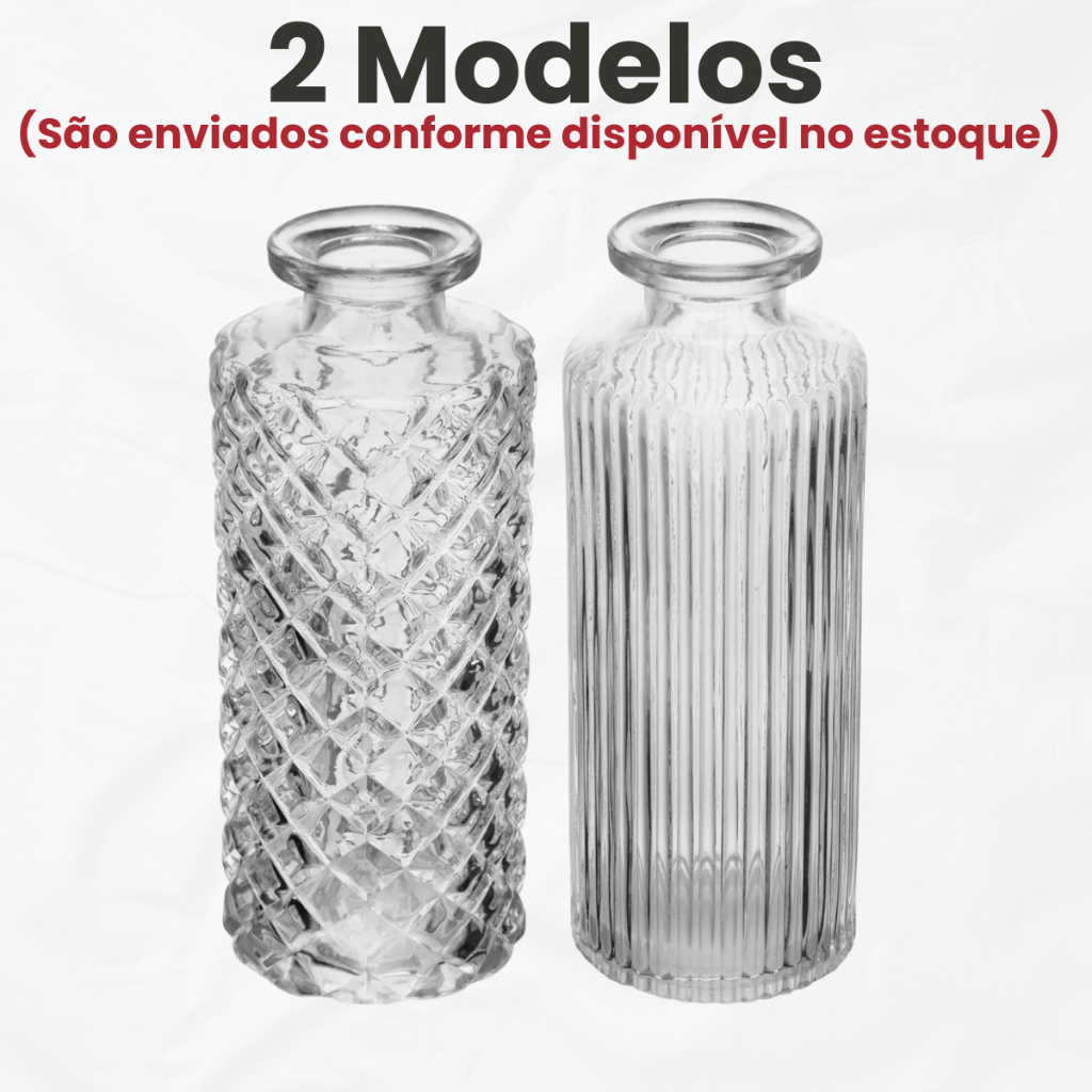 Kit 2/4/8/12 Vaso de Vidro Lyor 13,5cm x 5,5cm - Decorativo Arranjo de Flores Plantas Casa Enfeite Presente Aromatizador
