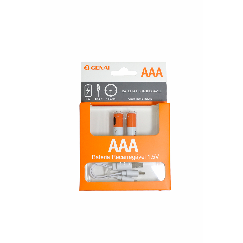Kit 2/4 Pilhas Aaa Recarregável 750mwh Genai Tipo C 1.5v 5v