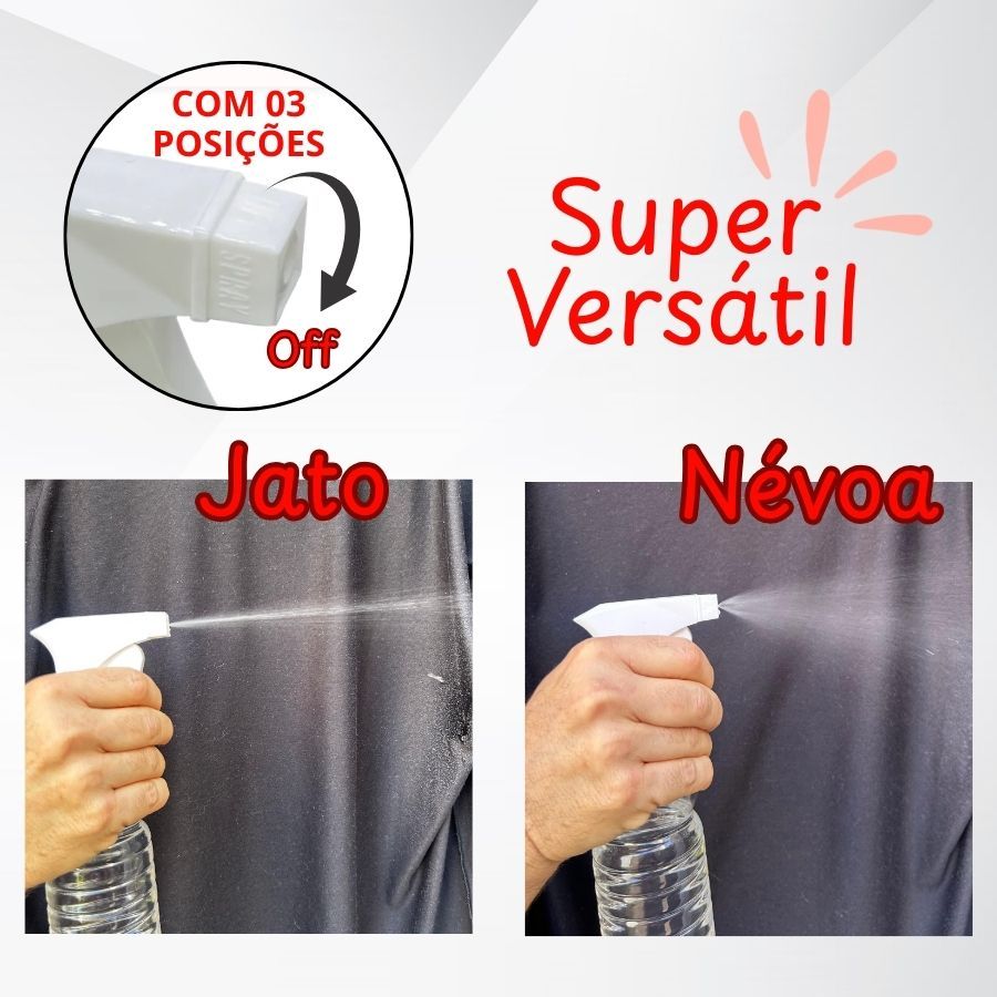 Kit Frasco Borrifador / Pulverizador 500mL - MODELO INCOLOR/REDONDO 🧴 Frasco com Gatilho (Spray) – Multiuso Descrição: Frasco PET com gatilho pulverizador, ideal para diferentes aplicações no dia a dia. Pode ser utilizado para: Águas de passar Águas perfumadas para tecidos Aromatizadores de ambiente Produtos de limpeza em geral Soluções cosméticas e domésticas Aplicações de jardinagem e em hortas Características do Gatilho: ✔️ Jato regulável com 3 funções: Off (fechado) – segurança e transporte Spray (jato aberto) – névoa uniforme Stream (jato fino corrente) – aplicação direcionada 🔧 Medidas do Frasco com Gatilho (Spray): Altura total: 260,00 mm Diâmetro do frasco: 63,00 mm Altura da rosca (bocal até base do gargalo): 210,00 mm Diâmetro da rosca externa: 28,00 mm Terminação da rosca: 28/410 mm Comprimento do pescante: 24,5 cm -------------------------------------------------------------------------------------------------------------------- Borrifador Plástico BRANCO OVAL 500 ml – Resistente, Leve e Pronto para Uso Profissional Ideal para quem busca um borrifador versátil e de excelente qualidade, perfeito para uso em salões, pet shops, limpeza, jardinagem, aromatizadores e produtos artesanais. Com design anatômico e confortável, ele oferece ótima pulverização e ótimo desempenho no dia a dia. Especificações: Capacidade: 500 ml Terminação: 28/410 Peso: 33 g Diâmetro (largura): 90,5 mm Altura: 158,4 mm Área para decoração/rotulagem: 56,6 mm x 82 mm Feito em material resistente e com excelente vedação, é ideal para quem precisa de praticidade e eficiência. Perfeito para envase de produtos líquidos como: ✨ Cosméticos ✨ Perfumes de ambientes ✨ Produtos de limpeza ✨ Soluções hidratantes para pets ✨ Artesanato e muito mais. Garanta o seu borrifador e deixe suas embalagens mais profissionais, eficientes e bonitas!