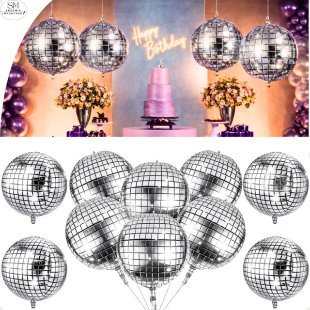 Kit 2, 5, 10 ou 20 Balao Metalizado Espelhado Discoteca Globo 4D Orbz Balada Festa Decoração Grande