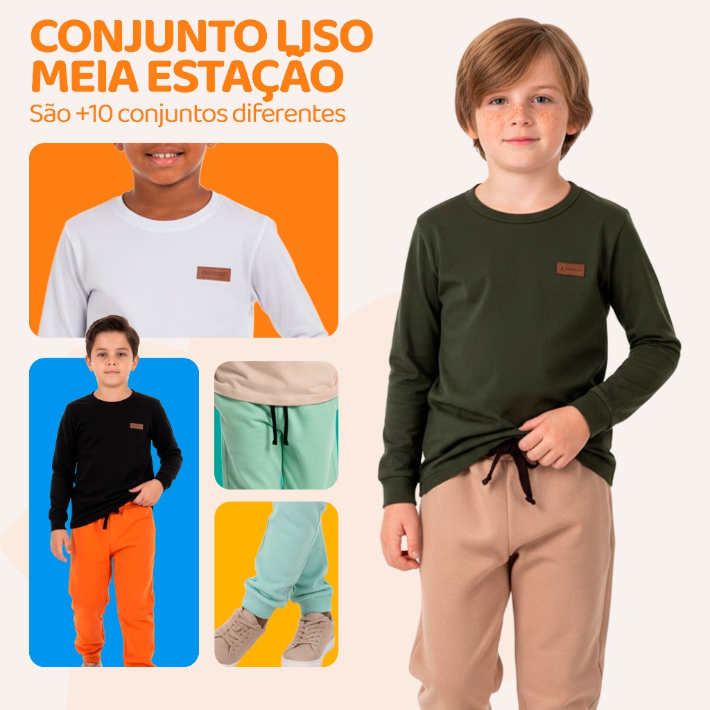Conjunto Calça/moletom Menino Conjunto Infantil Masculino | Camiseta Longa + Calça de Moletom Cada kit é composto por conjuntos sortidos, ideais para vestir os meninos com conforto e estilo nos dias mais fresquinhos! Disponível nas opções: - Kit com 1 conjunto - Kit com 2 conjuntos - Kit com 3 conjuntos ✅ Composição dos Tecidos: • Camiseta manga longa: 100% algodão • Calça de moletom peluciado: 60% algodão | 40% poliéster ✅ Design versátil: Estilo básico e confortável para o dia a dia, com cores e estampas variadas que facilitam a combinação com outros itens do guarda-roupa. ✅ Conforto garantido: Modelagem confortável, com elástico na cintura e tecido macio, ideal para brincadeiras, passeios e a rotina escolar. TABELA DE MEDIDAS Camiseta Manga Longa: Tamanho 2 – Largura: 29 cm | Comprimento: 38 cm | Manga: 30 cm Tamanho 3 – Largura: 30 cm | Comprimento: 39 cm | Manga: 31 cm Tamanho 4 – Largura: 33 cm | Comprimento: 44 cm | Manga: 37 cm Tamanho 6 – Largura: 34 cm | Comprimento: 45 cm | Manga: 38 cm Tamanho 8 – Largura: 36 cm | Comprimento: 46 cm | Manga: 44 cm Tamanho 10 – Largura: 39 cm | Comprimento: 48 cm | Manga: 45 cm Calça de Moletom: Tamanho 2 – Cintura: 20 cm | Comprimento: 45 cm Tamanho 3 – Cintura: 21 cm | Comprimento: 50 cm Tamanho 4 – Cintura: 22 cm | Comprimento: 56 cm Tamanho 6 – Cintura: 23 cm | Comprimento: 60 cm Tamanho 8 – Cintura: 24 cm | Comprimento: 63 cm Tamanho 10 – Cintura: 25 cm | Comprimento: 66 cm 📌 IMPORTANTE! ⚠️ Verifique a tabela de medidas para escolher o tamanho ideal. ⚠️ Os conjuntos são enviados de forma sortida, conforme disponibilidade. ⚠️ Até 2 kits do mesmo tamanho: garantimos variedade sem repetição. 📦 Produto disponível para envio imediato para todo o Brasil!
