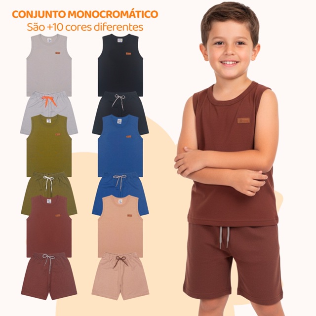 | Kit Sortido 10 Peças de Roupas Menino Verão - 5 Camisetas + 5 Bermudas | R$ 109,90 | — | 4.7/5 | 8 |