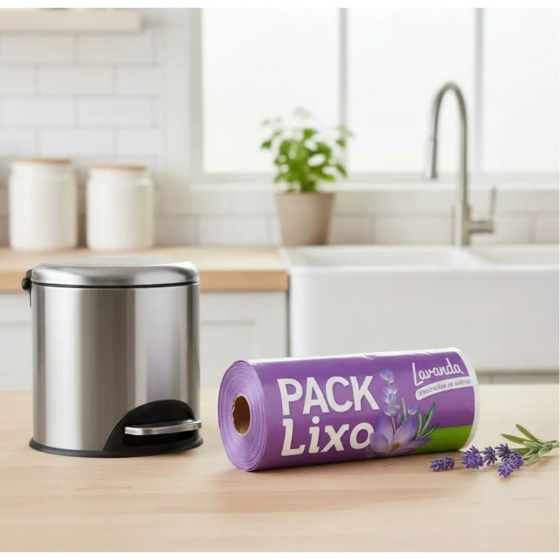 Kit 2~8 Pacotes com 80~320 Sacos de Lixo Perfumados Lavanda | Pia Cozinha e Banheiro | 34x38cm