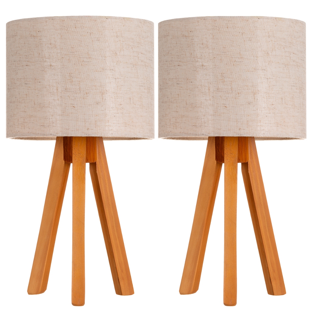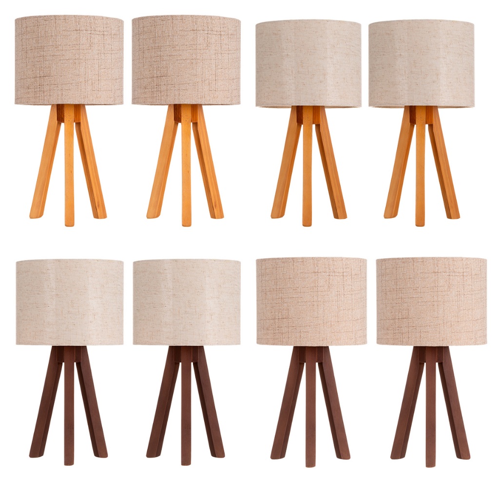 Kit 2 Abajur De Madeira Rustico Tripe Luminaria De Mesa