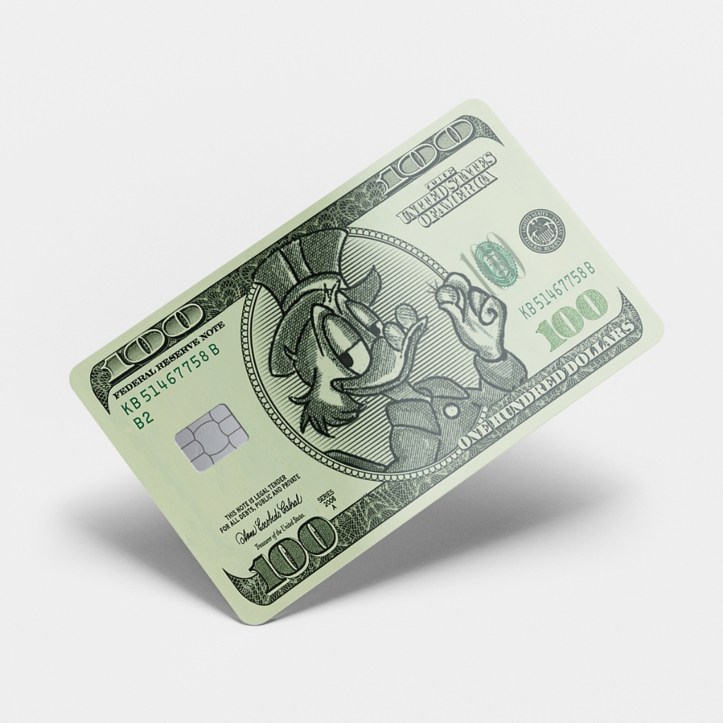 | Kit 2 Adesivos Película de Cartão Tio Patinhas Nota de Cem Dólares ... este produto | R$ 14,90 | — | 4.5/5 | — |