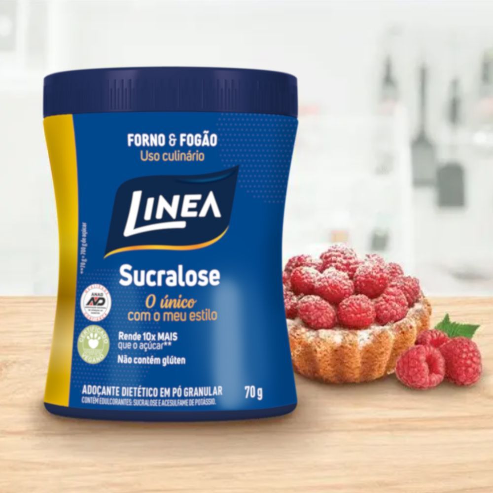 Linea Adoçante Culinário Sucralose é um edulcorante derivado da cana-de-açúcar, 100% eliminado pelo organismo e pode ser consumido por toda a família. Para portadores de diabetes, não eleva o açúcar no sangue. Contém 4kcal por colher e possui 20x menos calorias que o açúcar. Mantém o poder de adoçante em altas temperaturas, é aerado na medida certa para entregar a maior redução calórica e a mesma facilidade de uso do açúcar nas receitas (1 xícara de Linea Adoçante Culinário = 1 xícara de açúcar). 1 Kit composto por: 2 Unidades de Adoçante Sucralose Culinário Linea 70g (cada). INGREDIENTES Maltodextrina, edulcorantes: sucralose e acesulfame de potássio. NÃO CONTÉM GLÚTEN.