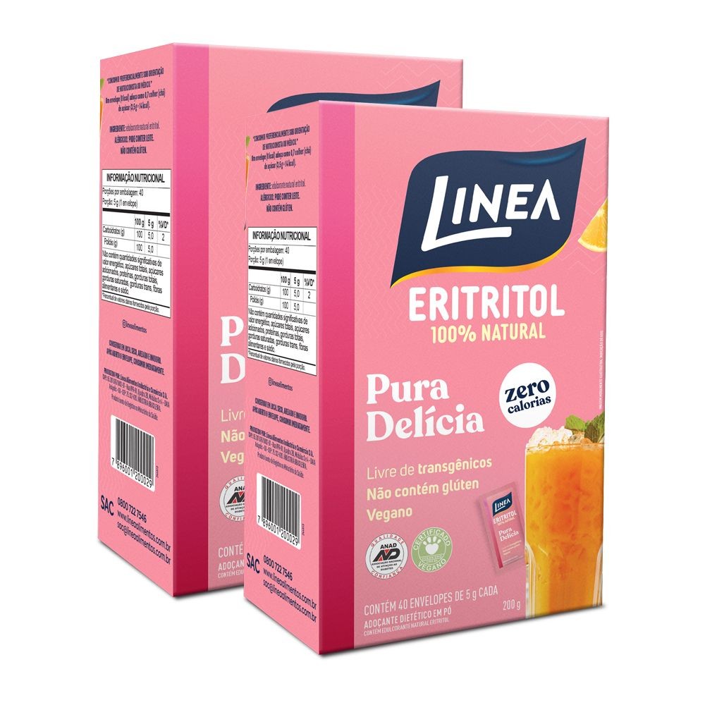 Kit 2 Adoçantes em pó Eritritol Linea 40 Sachês de 5g