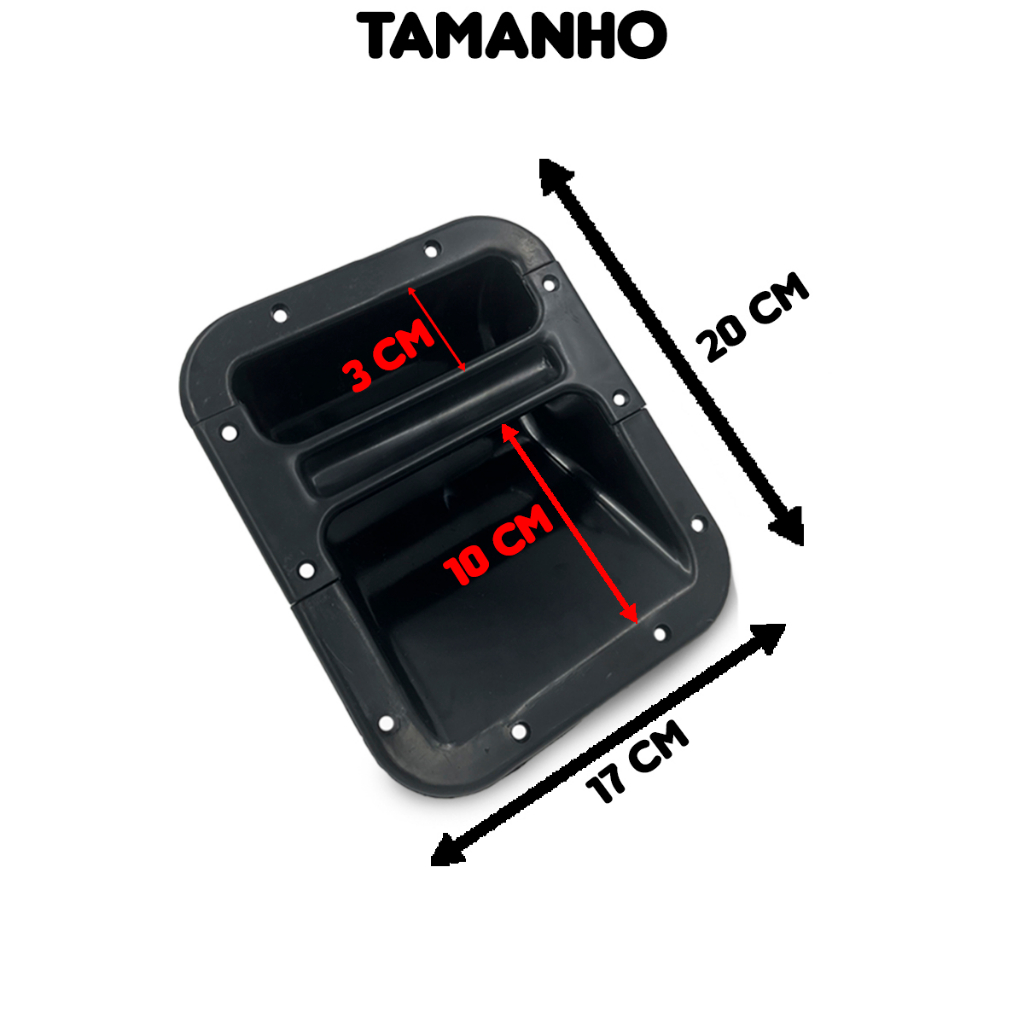 Os produtos são de altíssima qualidade e fino acabamento, proporcionando a originalidade e resistência que o cliente procura. Todos os produtos são inspecionados e testados com rigoroso controle de qualidade, desde o início do processo de produção até a expedição, garantindo a satisfação dos clientes. DESCRIÇÃO: - Marca: Permak - Ref.: 310/C - Kit com 2 alças ( 1 Par ) Para Caixas Acústicas Grandes. - Corpo em plástico ABS. - Alma com Reforço Metálico. - Projetada para suportar até 100kg Medidas: -Interna (parte a embutir): 14,0cm x 17,0cm -Externa (incluindo aba): 17,4cm x 20,7cm -Profundidade máxima (região da barra): 5,8cm Itens Inclusos: 01 Par de Alças para caixa de som.