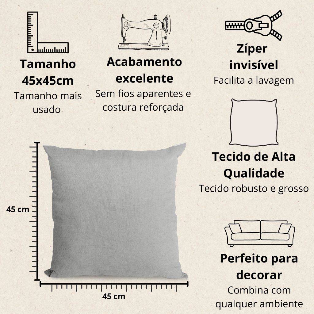 Kit 2 Almofadas Cheias Decorativas 45x45cm com Zíper Invisível Linho Estampado Várias Cores