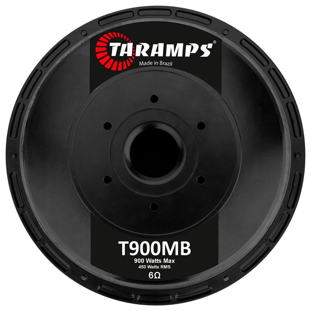 O T 900 MB é um Mid Bass projetado cuidadosamente para proporcionar alta definição e pressão sonora desde os médio graves até os médio agudos. Disponível na versão 10 polegadas e impedância 6 Ohms, ele é capaz de suportar até 900 Watts em programa musical, atendendo aos mais variados projetos de som automotivo e de uso profissional. Dentre as muitas possibilidades, podemos destacar o uso em caixas “cornetadas”, aplicação na qual apresenta excelente rendimento. Viva uma nova experiência sonora com os alto-falantes Taramps! Informações técnicas • Potência RMS de CADA: 450W • Potência RMS do PAR: 900W • Impedância Nominal: 6 Ohms • Sensibilidade(@ 1W, 1m)-Free-Air: 96,811dB • Densidade do fluxo no gap: 15.500 GAUSS • Resposta de frequência: 80Hz a 5.500Hz • Material do fio da bobina: CCAW • Forma da bobina: Fibra • Material do ferrite: Bário • Massa diafragma (mmd): 33,648g • Diâmetro da bobina: 3 polegadas • Frequência de ressonância: 77,124Hz • Área efetiva do cone (sd): 0,0356 Sq.m • Diâmetro nominal: 10 Polegadas • Peso: 9,86Kg