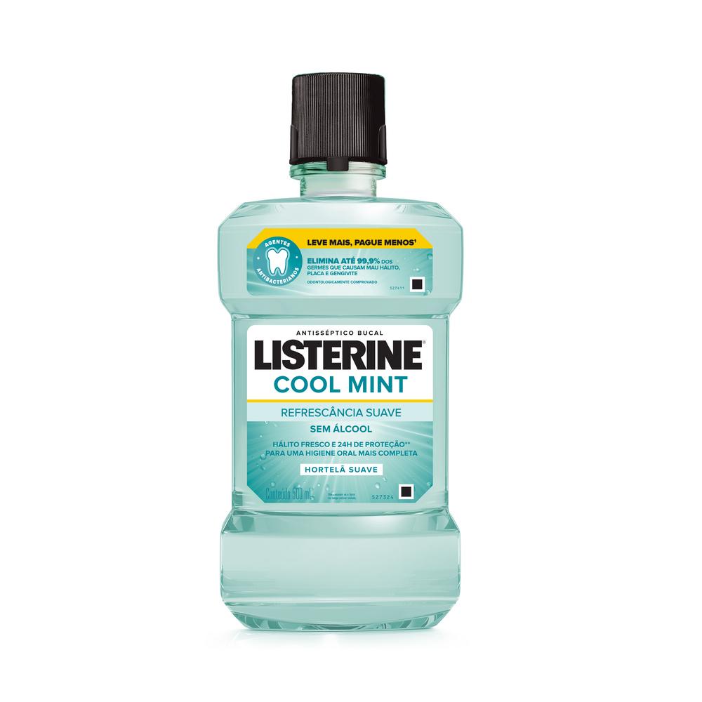 O Kit contém: 2 Antissépticos Bucal Listerine Cool Mint Refrescância Suave 500ml. ENXAGUANTE BUCAL LISTERINE® COOL MINT REFRESCÂNCIA SUAVE PARA UMA BOCA SAUDÁVEL E PROTEGIDA DE VERDADE! FÓRMULA EXCLUSIVA COM AGENTES ANTIBACTERIANOS QUE ELIMINAM ATÉ 99.9% DOS GERMES* EM APENAS 30 SEGUNDOS! Com ativo natural e ativo purificado, a inovadora combinação dos 4 óleos essenciais de LISTERINE® age sobre as bactérias escondidas nos cantos mais difíceis de alcançar da sua boca. *germes que causam placa, gengivite e mau hálito. *Compre Produtos Listerine.