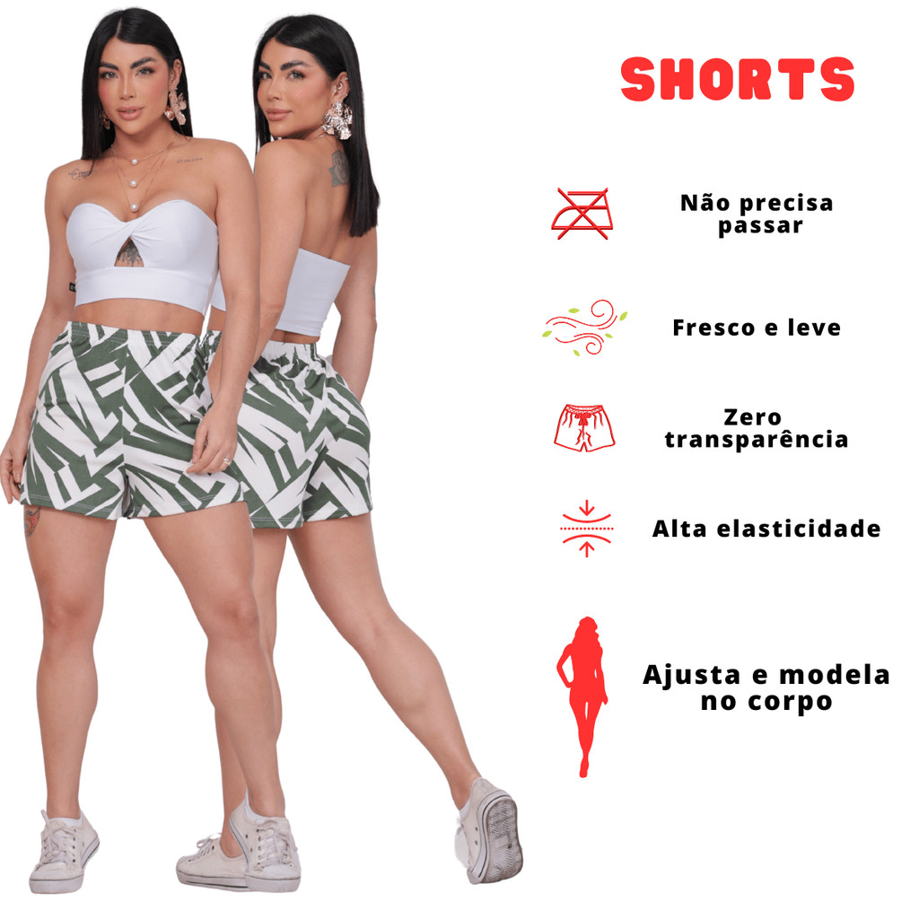 Kit 2 ao Kit 5 Shorts Feminino Verão Leve Shortinho Tendência Moda com Elástico Cintura Alta