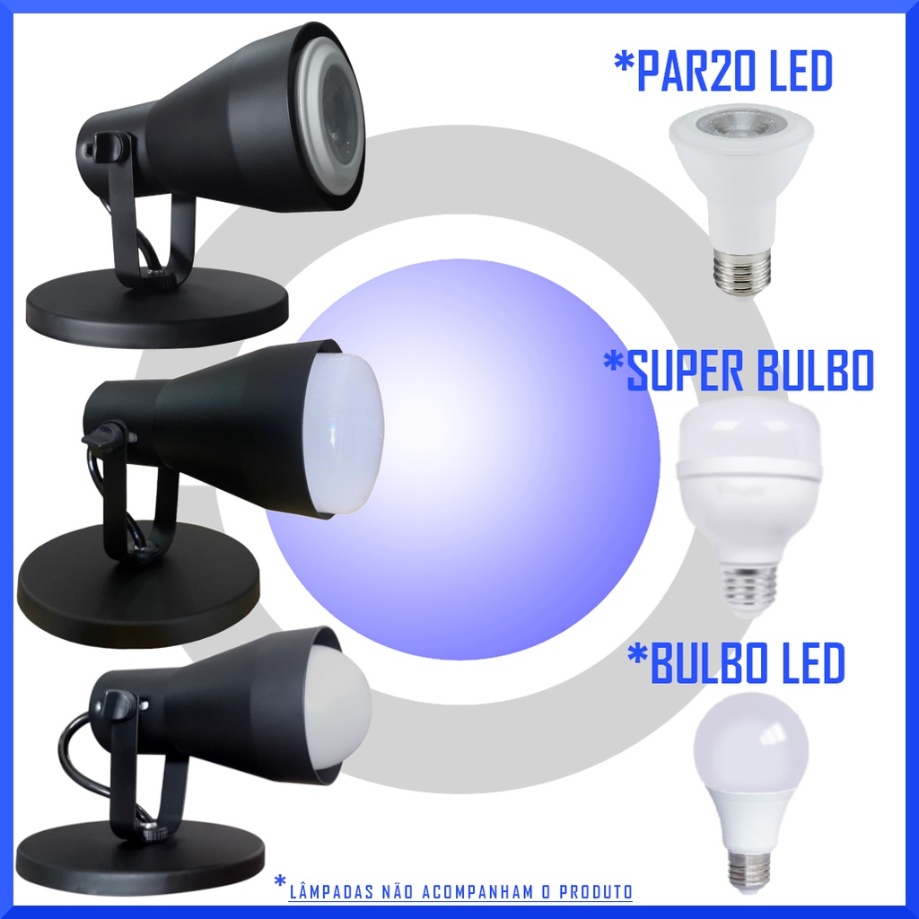 PRODUTO NAO ACOMPANHA TOMADA E INTERRUPTOR, DEVE SER INSTALADO DIRETO NA REDE ELETRICA. - TEMOS MODELO PARA DUAS LAMPADAS! (Solicite via chat). - TEMOS MODELO COM TOMADA, FIO E INTERRUPTOR, VEJA OS OUTROS ANUNCIOS OU ENTRE EM CONTATO VIA CHAT! (PERGUNTE-NOS) Somos uma empresa especializada na fabricacao de spots desde 2012 e consolidou-se como uma das melhores empresas do ramo e dentro por merito de seu trabalho serio na fabricacao das luminarias, no atendimento, no envio urgente das vendas, no suporte aos compradores e em todos processos diarios de uma empresa. A atencao com os procedimentos diarios e constante e para isso temos departamentos e pessoas responsaveis por fabricacao/producao, montagem, supervisao de qualidade e empacotamento para que chegue ate voce um produto com maxima qualidade na composicao e acabamento. Spot de sobrepor indicado para todos ambientes internos ou externos com o minimo de cobertura. Geralmente fixadas em paredes como iluminacao auxiliar, tambem muito utilizada tambem para dar foco de luz em um ambiente com quadros e espelhos. Pode ser instalado tambem no teto (forro, gesso, laje, madeira) pois tem a vantagem de ser uma luminaria de luz direta e sem bloqueio parcial da claridade emitida para funcionar como iluminacao geral (difusa, espalhada) do ambiente. Geralmente usa-se inserir lampada Bulbo Led (comuns, redondinhas). Pode-se utilizar lampada PAR20 Led (luz menos espalhada). Este spot e fabricado com componentes e materiais de primeira qualidade com a preocupacao de ser duravel e com bonito acabamento. Feito em aluminio de chapa mais grossa, sendo nas cores branco ou preto fosco a tinta utilizada e eletrostatica. Todos os outros componentes utilizados sao para uma facil instalacao/fixacao. - Luminárias a pronta entrega e enviamos diariamente para todo Brasil. - Rápido atendimento sobre algo relacionado a compra e produto. - Vídeos sobre instalação. - Garantia de 1 ano - Satisfação Garantida ou Seu Dinheiro de Volta. - Produto Brasileiro - Acompanha Parafusos e Buchas para fixação Ficha Tecnica Resumida * Soquete E27 (Roscavel). * Material: Aluminio. * Pintura eletrostatica. * Produto Bivolt (110V e 220V). * Regulador de profundidade da lampada. * Sugestao de lampada - Bulbo LED ou PAR20 ate 30w (para melhor harmonia na estetica do conjunto (spot + lampada). * LAMPADAS NAO ACOMPANHAM OS SPOTS/LUMINARIAS. * Medidas - Vide foto no anuncio. Disponivel nas cores Branco ou Preto. Temos outros modelos para lampada PAR30, PAR20, Bulbo LED, Dicroica, AR70 e AR111. Consulte-nos! Nao queremos vender somente nossos spots, queremos com as vendas ajudar pessoas, queremos que os profissionais de instalacao nao tenham trabalho com a fixacao/instalacao de nossos produtos, queremos que os compradores gostem do que compraram e no ambiente que em que se encontra nossa luminaria esteja bonito e iluminado.