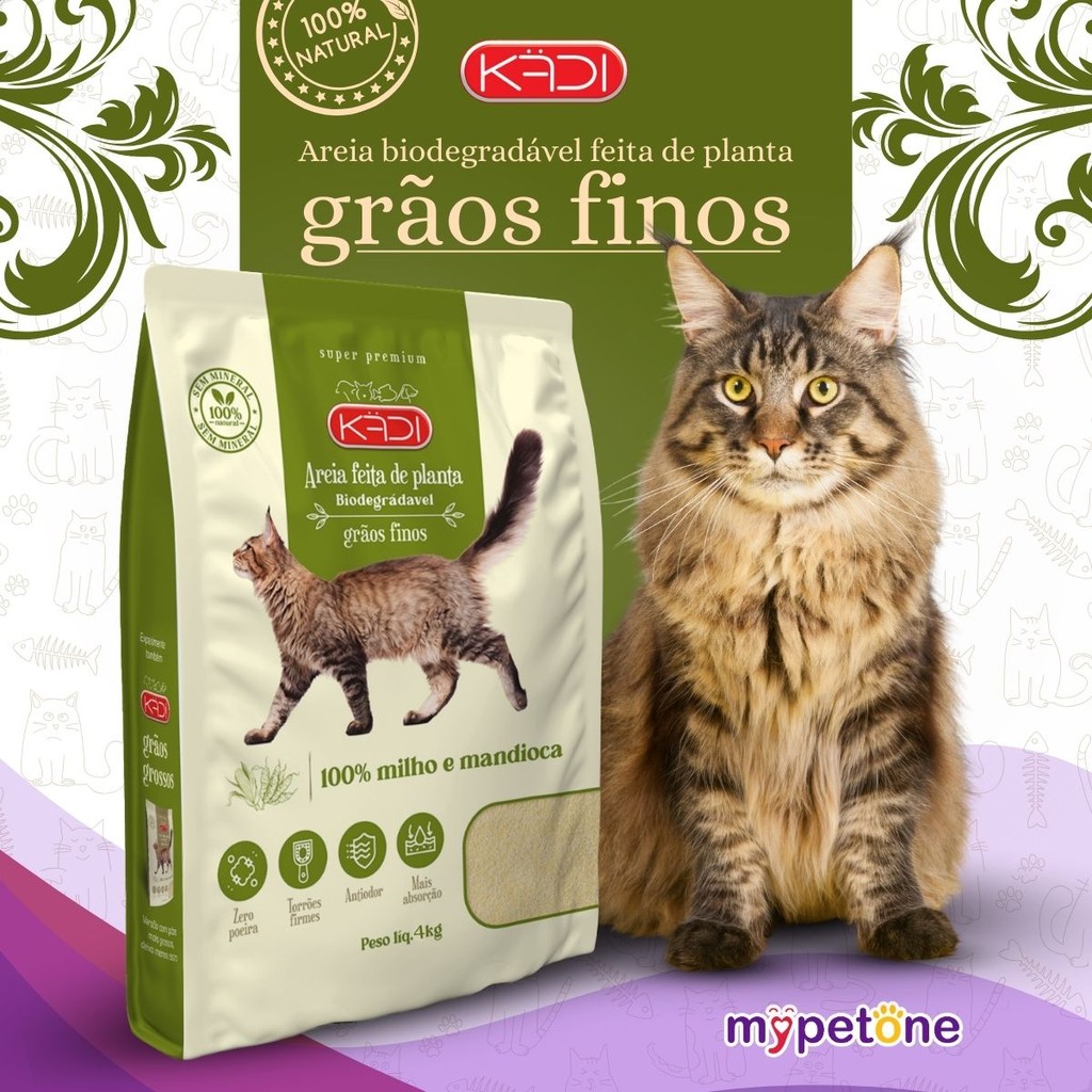 Areia Biodegradavel Kadi Graos Finos para Gatos 4Kg Cuide da higiene do seu gatinho com mais praticidade sustentabilidade e eficiencia A Areia Biodegradavel Kadi Graos Finos para Gatos - 4Kg e feita com ingredientes naturais como milho e mandioca formando torroes firmes e ajudando a eliminar odores indesejaveis Ideal para quem busca limpeza economia e consciencia ecologica no dia a dia Beneficios - Alta absorcao maior durabilidade e economia - Controle eficaz de odores - Torroes firmes limpeza pratica e rapida - Biodegradavel e 100 natural - Pode ser descartada como adubo nunca no vaso sanitario