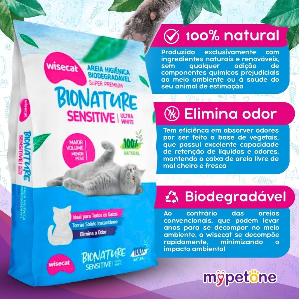 🐾 Areia Higiênica Bionature Sensitive 2kg - 100% Natural e Super Premium Cansado de cheiros fortes e areias que fazem sujeira pela casa toda? Conheça a Bionature Sensitive, a escolha número 1 para tutores que buscam o máximo de higiene, sustentabilidade e cuidado com a saúde do seu gato. Diferente das areias comuns, a Bionature é feita de derivados de mandioca, garantindo um ambiente limpo e sem poeira! ✨ Por que escolher a Bionature Sensitive? ✅ Torrão Instantâneo e Firme: Não esfarela na hora de remover, facilitando a limpeza diária. ✅ Zero Odor: Tecnologia natural que neutraliza o cheiro de urina e fezes instantaneamente. ✅ 100% Natural e Biodegradável: Sem químicos, sem fragrâncias e amiga do meio ambiente. ✅ Patinhas Limpas: Textura suave que não machuca e não levanta aquele pó que irrita o sistema respiratório do gato. ✅ Monitoramento de Saúde: Por ser clara, permite identificar qualquer alteração na cor da urina do seu pet. 🛠️ Especificações Técnicas: - Peso: 2kg - Composição: Derivados de mandioca (fonte renovável). - Indicação: Gatos de todas as idades, raças e portes. - Rendimento: Alto desempenho com baixo desperdício. 💡 Dicas de Uso para Maior Economia: 1- Mantenha uma camada de 5 cm de altura na caixa. 2- Remova os torrões diariamente (eles se formam na hora!). 3- Complete apenas o que foi retirado para manter o nível. 4- Dica: Descarte os torrões no lixo orgânico para manter a sustentabilidade do ciclo.