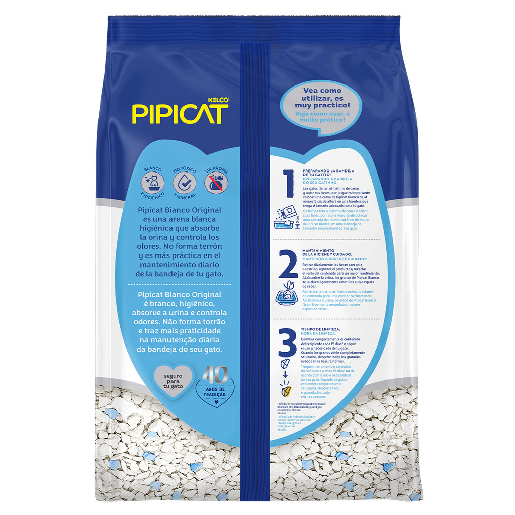 - Sem fragrância, não forma torrão; - Branco e higiênico, com Ph neutro; - Leve, fácil de transportar e abastecer; - Controle de odores, natural e atóxico; - Grãos grandes, não gruda nas patinhas. O Granulado Sanitário Kelco Pipicat Bianco é a alternativa perfeita para a higiene do seu gato. Com grãos grandes e brancos, é natural, atóxica e não forma torrões. Possui alto controle de odores, contribuindo para que seu lar não fique com cheiros desagradáveis.