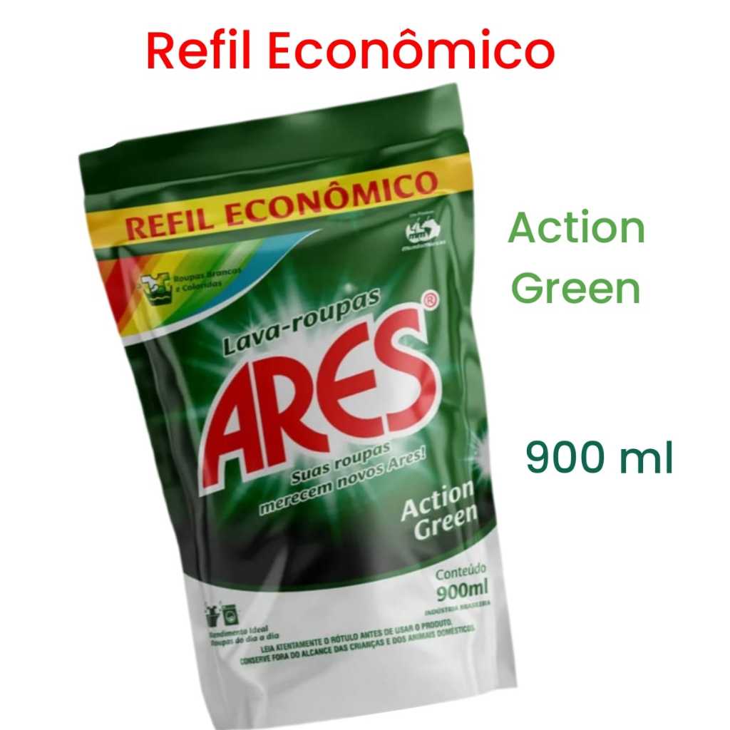 Descrição do ProdutO Ares Lava Roupas Líquido Action Green 900ml Sachê é a escolha perfeita para quem busca praticidade, economia e cuidado com as roupas. Com sua fórmula eficiente, ele remove manchas com facilidade, preservando as fibras e cores dos tecidos. Ideal para lavar roupas brancas e coloridas, garantindo frescor e limpeza duradoura ✔ Fácil de usar: embalagem em sachê prática e econômica. ✔ Sustentável: fórmula desenvolvida pensando no meio ambiente. ✔ Alta performance: limpeza profunda com fragrância agradável. Indicação de uso: perfeito para uso em máquinas de lavar ou lavagem manual. Experimente o cuidado e a qualidade de Ares em cada lavagem!