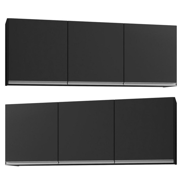 Kit 2 Armários Aéreos 150cm 3 Portas Argélia Preto - Lumil