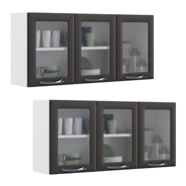 | Armários de Cozinha Aéreo 3 Portas 120cm Kit 2 Honduras Preto - Lumil | R$ 645,24 | 20% | 5.0/5 | — |