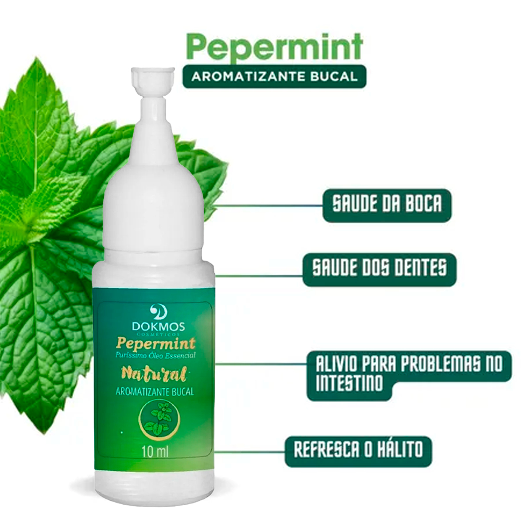 Kit 2 Aromatizador Bucal Óleo Essencial - Halito Refrescante Hortela Natural 10ml Dokmos Pepermint