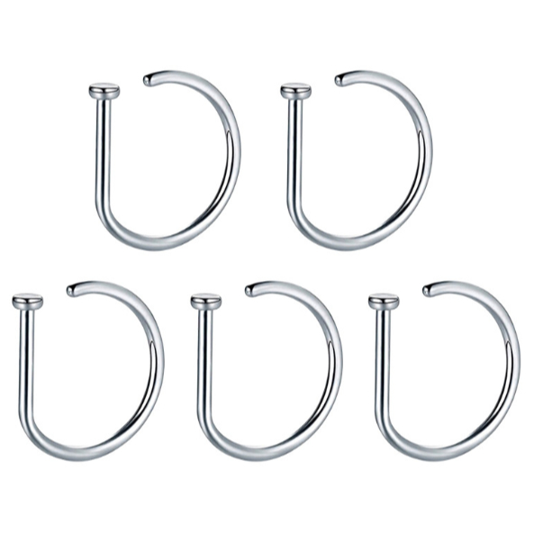 Kit 2 ate 12 Unidades Piercing Nariz Argola D-Ring Prateado Nostril, Septril, Rook, Conch
