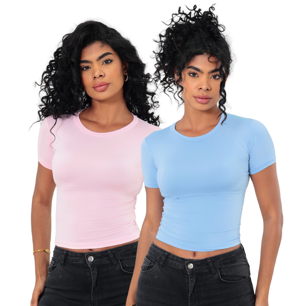 KIT 2 Baby Tee Feminina - Blusa Slim Fit Manga Curta Candy Colors
