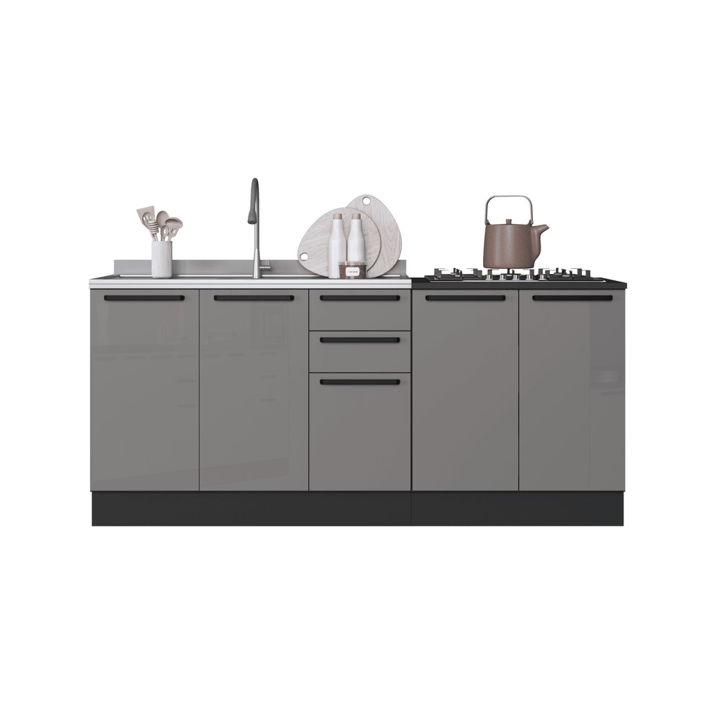 Kit 2 Balcões Modulados Gabinete Pia 120cm e Cooktop 80cm Mônaco Com Rodapé Sem Tampo Chumbo/Titânio
