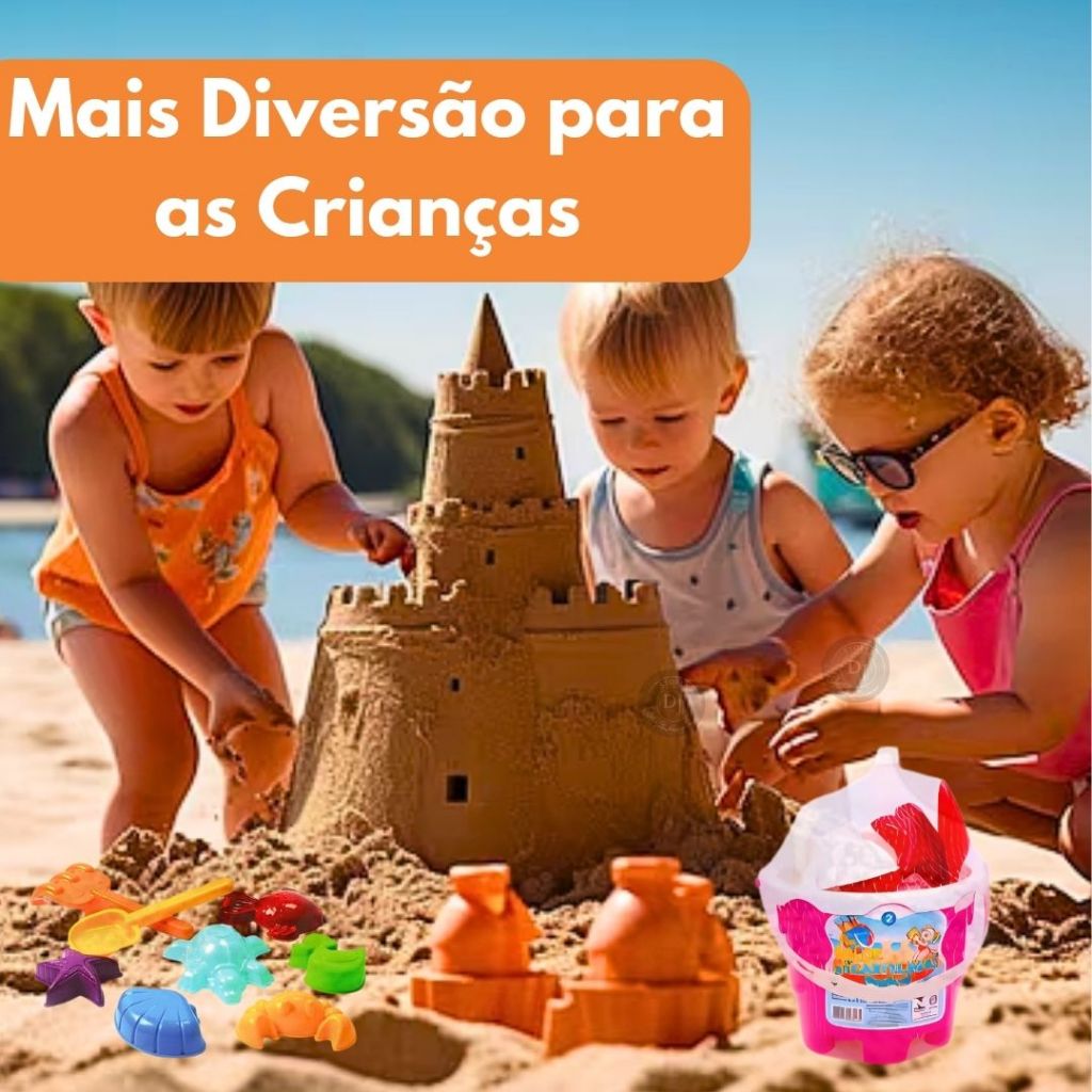 | Kit 2 Baldinhos De Areia Infantil Menina Com 6 Acessórios Castelo P... este produto | R$ 23,99 | 70% | 4.9/5 | 39 |