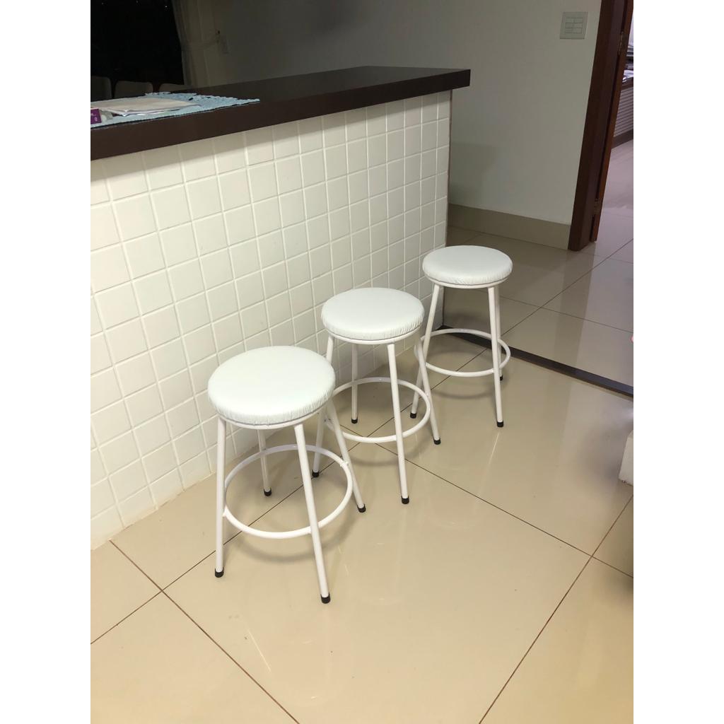 Kit 2 Banco Baixo 50 Cm Sem Encosto Para Cozinha-Mesa-Bar * Deixe seu Ambiente ainda mais agradável e aconchegante com produtos de qualidade e conforto. Ficha Técnica: * Fabricação Própria * Material da Estrutura: Aço ¾ * Acabamento do Assento: Corino * Altura Total do Assento até o Chão: 50 cm * Diâmetro do Assento: 29 cm * Assento confortável com espuma de 20 mm de espessura * Estrutura: Pintura Epóxi Branco * Disponível nas Cores: Branco * Suporta até 100 kg * Conteúdo da Embalagem: Kit com 2 Banquetas de 50 cm de Altura cada uma. Fabricação Própria