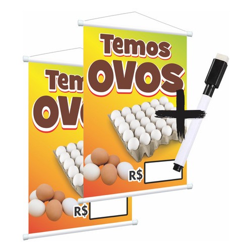Kit 2 Banners Temos Ovos Preço - Escreve E Apaga + Caneta