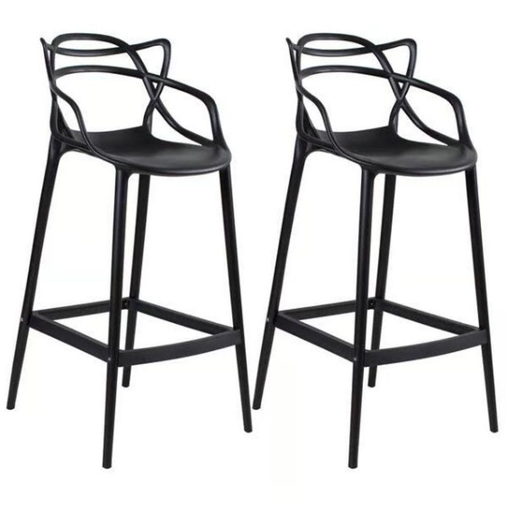 Kit 2 Banqueta Allegra Alta Cozinha Americana Bar Balcão Preto<br>Modelo: Banqueta Allegra Master<br>Com design moderno a banqueta allegra é ideal para decorar qualquer ambiente. A banqueta possui encosto vazado e descanso para os pés, prática e confortável. Ideal para deixar a sua bancada de alimentação ou bar mais moderna.<br><br>Altura Total: 109 cm<br>Altura do Chão Até o Assento: 76 cm<br>Profundidade Interna do Assento: 40 cm<br>Largura Interna do Assento: 36 cm<br>Peso Máx. Recomendado: 120 kgs<br>Peso unitário: 4,6 kgs<br>Não Giratória<br>Não Dobrável<br>Não Empilhavel<br><br>Indicações de :<br>- Não utilizar produtos químicos e abrasivos para limpeza<br>- Limpar com pano umedecido e sabão neutro para melhor conservação<br>- Deve ser evitada exposição dos produtos ao sol pois podem apresentar pequenas mudanças em sua coloração.<br>Observações importantes:<br>- Produto NÃO necessita de montagem<br>- Pode haver alguma diferença de tonalidade entre a imagem e o produto real, por conta do tratamento de imagens e a calibração de cores do seu monitor.<br>- Ao receber a mercadoria, o cliente deve verificar as condições da embalagem, caso haja alguma não assine o comprovante de recebimento.<br><br>