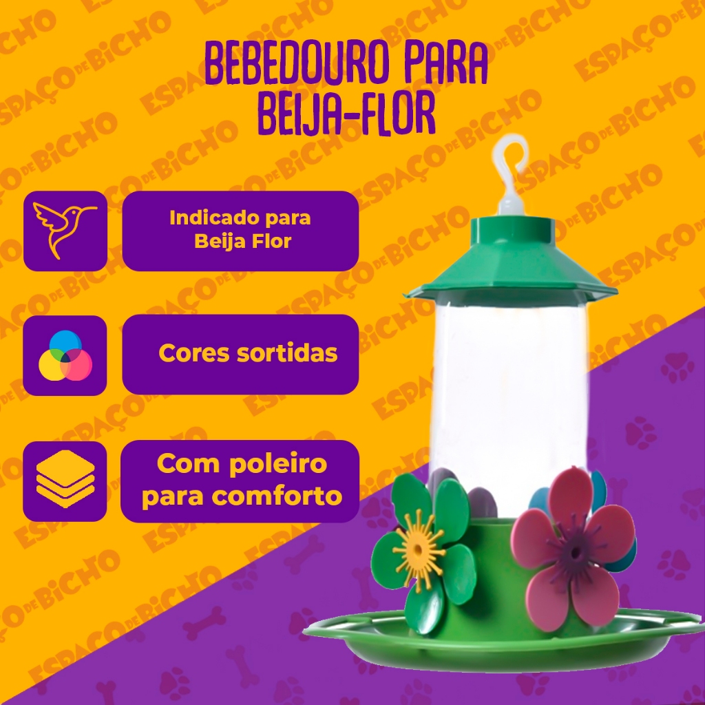 Trata-se de um produto leve, atrativo, portátil, resistente, decorativo, fácil de lavar e não vaza. É prático, higiênico e totalmente composto por material reciclável. Traga a natureza para perto de sua casa! • Leve, prático e resistente a sol e chuva. * Não vaza. • Possui bandeja para colocar ração e frutas. * Possui poleiro para facilitar o pouso dos pássaros. * Possui reservatório de 250ml para colocar água ou nectar. • Pendure onde quiser com o gancho na parte superior. * Fácil de Montar. • Material: Resina Plástica. * Capacidade de água: 250ml. * Dimensões: - Altura: 20cm - Largura: 16cm