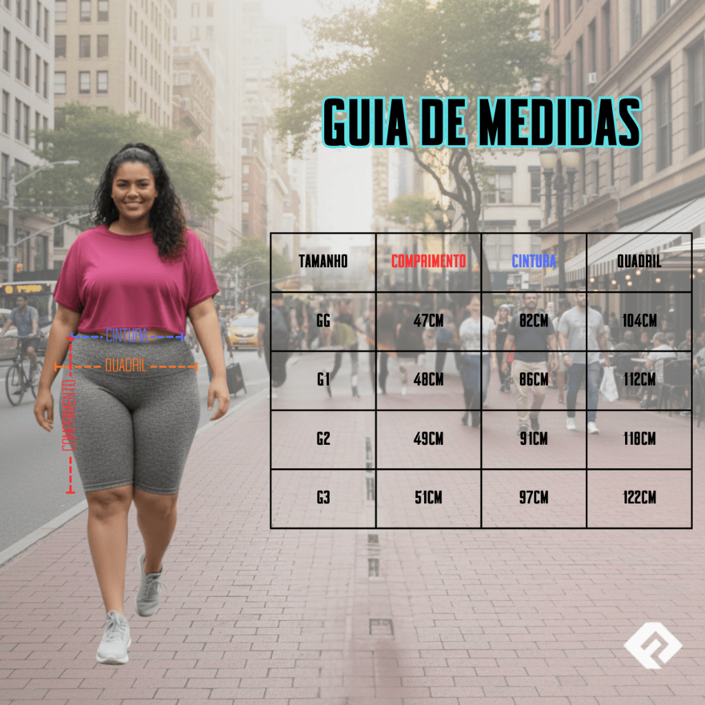 Kit 2 Bermuda Legging Plus Size Feminina A bermuda legging feminina une estilo e conforto em uma peça prática e versátil. Confeccionada em tecido elástico e respirável, oferece ajuste perfeito e liberdade de movimento. Ideal para atividades físicas ou para um look casual, ela possui uma cintura alta que proporciona suporte e segurança. Disponível em diversas cores, é fácil de combinar com diferentes tops e calçados. **Atenção para uma melhor experiencia com nossa Bermuda Legging Feminina atente-se a tabela de medidas* DETALHES DO PRODUTO *Suplex de Alta Qualidade *Costura Reforçada *Cintura Alta *92% Poliéster 8% Elastano Tabela de medidas: Tamanho P: Cintura 58cm - Quadril 76cm - Comprimento 45cm Tamanho M: Cintura 64cm - Quadril 78cm - Comprimento 45cm Tamanho G: Cintura 72cm - Quadril 82cm - Comprimento 46cm Tamanho GG: Cintura 74cm - Quadril 92cm - Comprimento 47cm Tamanho G1: Cintura 82cm - Quadril 93cm - Comprimento 47cm Tamanho G2: Cintura 88cm - Quadril 100cm - Comprimento 48cm Tamanho G3: Cintura 92cm - Quadril 102cm - Comprimento 51cm ***Pequenas variações podem ocorrer, Medidas sem esticar o tecido*** Produto Novo: Sim Envio Imediato: Sim