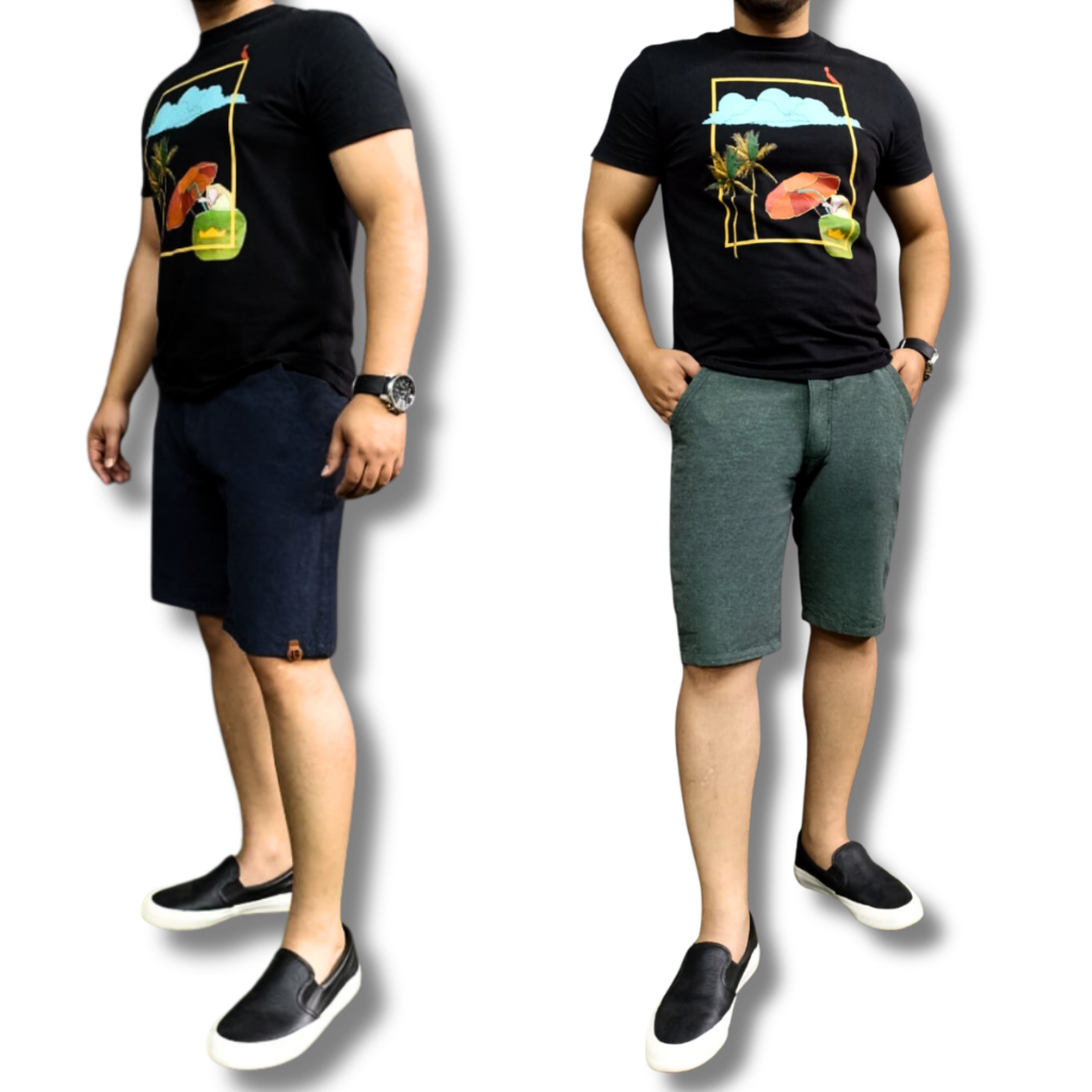 Kit 2 Bermuda Masculina Social Esporte Fino Sarja Brim Lisa