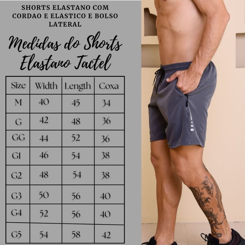 Shorts Masculinos de Tactel com Elastano – Estilo e Conforto em Qualquer Ocasião. Apresentamos nossos shorts masculinos de tactel com elastano, ideais para homens que buscam aliar estilo, conforto e funcionalidade no dia a dia. Vantagens dos nossos shorts masculinos: - Conforto Imbatível: Combinando tactel e elastano, nossos shorts proporcionam uma sensação leve e flexível, perfeita para qualquer atividade. - Estilo Moderno: Disponíveis em diversas cores e designs, nossos shorts são ideais para quem quer estar na moda em todas as ocasiões, seja na academia, na praia ou em um passeio casual. - Liberdade de Movimento: O elastano oferece elasticidade extra, garantindo que os shorts se ajustem perfeitamente ao corpo sem restringir seus movimentos. - Durabilidade: Produzidos com materiais de alta qualidade, nossos shorts são resistentes e mantêm sua aparência e funcionalidade mesmo após várias lavagens. - Praticidade: Contam com bolsos funcionais e cintura ajustável, proporcionando maior praticidade e conforto durante o uso. Não perca a oportunidade de renovar seu guarda-roupa com nossos shorts masculinos de tactel com elastano. Compre agora e experimente o melhor em conforto e estilo! todos os produtos têm garantia de 30 Dias pelo fabricante contra defeito de fabricação. Se ainda houver alguma dúvida estamos a disposição para responder