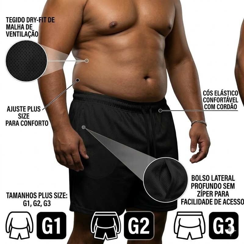 DOMINE SEUS TREINOS COM O MÁXIMO DE CONFORTO E ESTILO! 🏃♂️🏋️♂️ Cansado de bermudas que prendem seus movimentos ou demoram horas para secar? Nossa Bermuda Dry Fit Premium foi desenvolvida para quem não abre mão de performance e praticidade, seja na academia, na corrida ou no descanso de fim de semana. ✅ TECNOLOGIA DRY FIT: Tecido leve e respirável que absorve o suor rapidamente, mantendo você seco e fresco por muito mais tempo. ✅ PRATICIDADE TOTAL: Possui bolsos laterais ideais para guardar celular, chaves ou documentos com segurança. ✅ LIBERDADE DE MOVIMENTO: Modelagem pensada para garantir flexibilidade total em qualquer exercício. ✅ SECAGEM ULTRA RÁPIDA: Lavou, secou! Perfeita para quem tem a rotina corrida. ✅ DO P AO PLUS SIZE: Temos o ajuste perfeito para todos os corpos, com caimento impecável do tamanho padrão ao Plus Size. *COR SORTIDA NÃO OPÇÃO DE ESCOLHA DE COR*