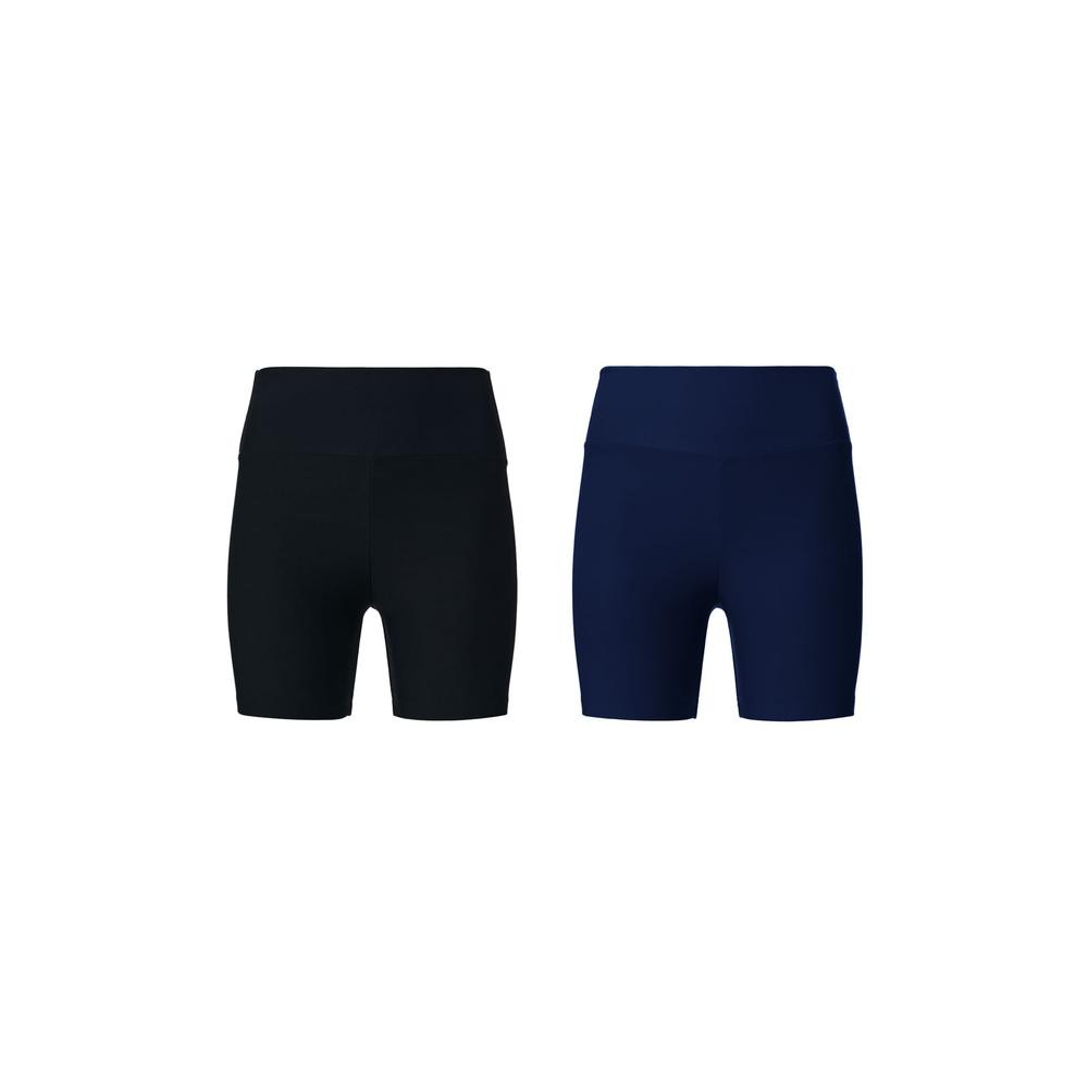 Kit 2 shorts em tecido de poliéster com elastano, levemente texturizado. Tecido de fácil cuidado, com secagem rápida e elasticidade e movimento. Esse kit contém 1 bermuda na cor preta e 1 bermuda na cor azul. Detalhes da peça: Tecido de poliéster Cintura alta Cós largo