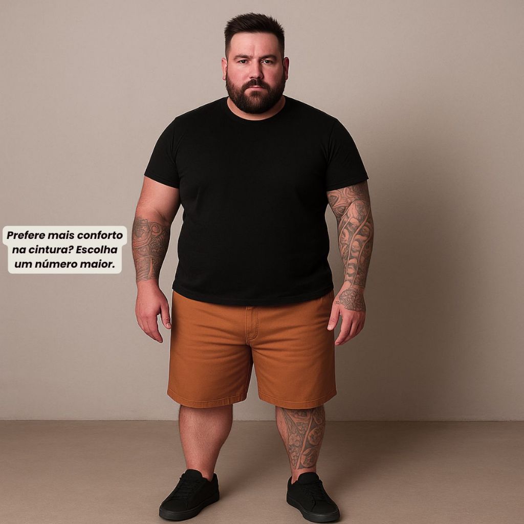 Compre um número maior para evitar que fique apertada na cintura! Kit 2 Bermudas Sarja Evolution – Conforto, Estilo e Economia! Agora em kit com 2 unidades, as Bermudas Sarja Evolution oferecem o máximo em conforto e versatilidade para o seu dia a dia. Produzidas em 100% algodão de alta qualidade, combinam resistência, estilo e praticidade em dobro. **Características:** - **Tamanhos Plus Size:** Disponíveis do 60 ao 66, com ajuste perfeito seguindo nosso guia de tamanhos. - **Corte Reto:** Caimento moderno e confortável para qualquer ocasião. - **Praticidade Total:** Cada bermuda vem com 4 bolsos + bolso relógio para guardar tudo com segurança. - **Durabilidade Comprovada:** Não desbotam e não soltam tinta na lavagem. - **Acabamento Premium:** Sem linhas soltas, sem desconforto, só qualidade ao vestir. Com a Evolution, você garante estilo e liberdade de movimento em dobro. Escolha suas cores favoritas e turbine seu guarda-roupa com esse kit que é a cara do verão. Leve 2, pague menos e esteja pronto para qualquer ocasião!