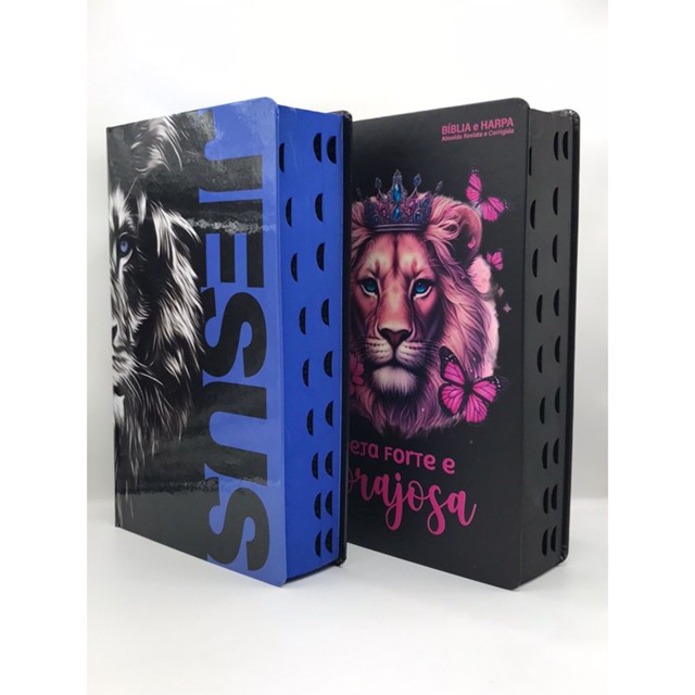 Bíblia Sagrada - LETRAS GIGANTES Fonte Reduzida - Harpa Cristã - Tamanho Grande - Versão Almeida - Índice Você que ama a palavra do Senhor tem hoje a grande oportunidade de adquirir esse modelo especial Luxo, mais barata com Letras Gigantes de Fonte Reduzida, Harpa Cristã, Tamanho Grande e muito mais, ideal para Revenda, dar de presente, fazer ações de evangelismo ou para o seu dia a dia. Essa Bíblia além de ter preço muito acessível possui diversos atrativos, como: *Kit com Duas Bíblias [Jesus Azul - Leão Borboletas] * Editora Kings Cross * Possui LETRAS GIGANTES; * As Palavras Ditas por Jesus são destacadas em Vermelho * Harpa Cristã; * Versão Tradicional * João Ferreira de Almeida Revista e corrigida; * Capa Dura * Possui índice na Lateral da Bíblia Tamanho Grande: 21cm Altura x 14cm Largura * e muito mais...