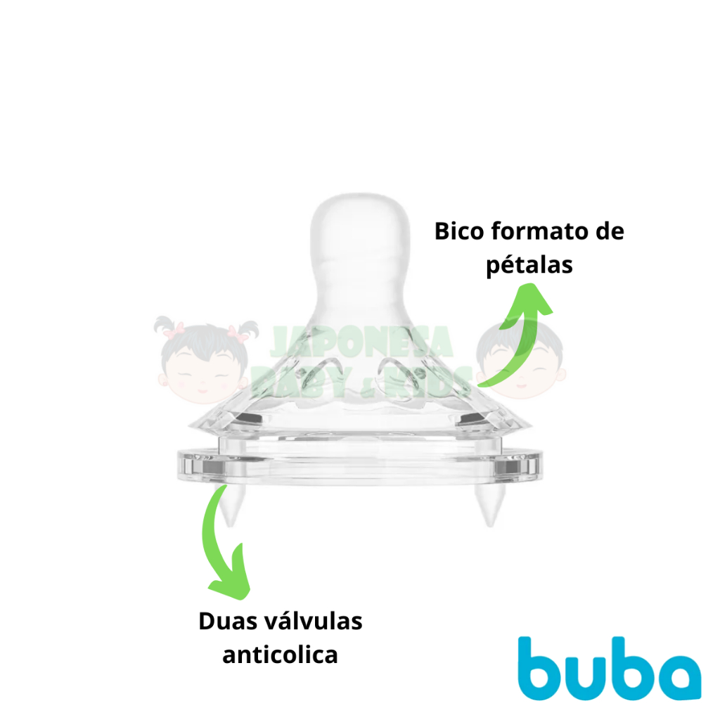 O bico para Mamadeira Easy Flow Buba Anticólica Encaixa em todas as mamadeiras Buba. Em formato de pétala se assemelha ao seio da mãe. O bico para mamadeira Easy Flow da Buba é projetado para proporcionar uma experiência de alimentação confortável e segura para o bebê, ajudando a minimizar os problemas de cólicas e gases. Sitema Anticólica: Equipado com duas válvulas que reduzem a ingestão de ar, evitando a formação de gases e prevenindo cólicas. - Bico em Silicone Ultrasoft: Produzido em silicone supermacio que imita o bico do seio materno, é resistente a mordidas, anticolapso, e oferece um fluxo rápido. - Material dos bicos: Silicone, BPA Free (livre de Bisfenol-A). Fabricado em 100% silicone Clinicamente testado Tamanhos Disponíveis e Indicação de Uso: Fluxo 1: Para bebês a partir de 0 mês (fluxo super lento. Fluxo 2: Para bebês a partir de 2 meses (fluxo lento). Fluxo 3: Para bebês a partir de 4 meses (fluxo médio). Fluxo 4: Para bebês a partir de 6 meses (indicado para líquidos espessos e fluxo rápido). “O MINISTÉRIO DA SAÚDE ADVERTE: A CRIANÇA QUE MAMA NO PEITO NÃO NECESSITA DE MAMADEIRA, BICO OU CHUPETA. O USO DE MAMADEIRA, BICO OU CHUPETA PREJUDICA O ALEITAMENTO MATERNO."