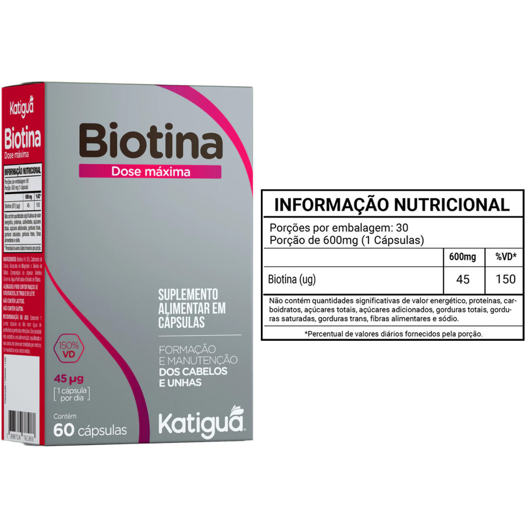 Kit 2 Biotina Dose Máxima 600mg Vitamina B7 Katiguá Original