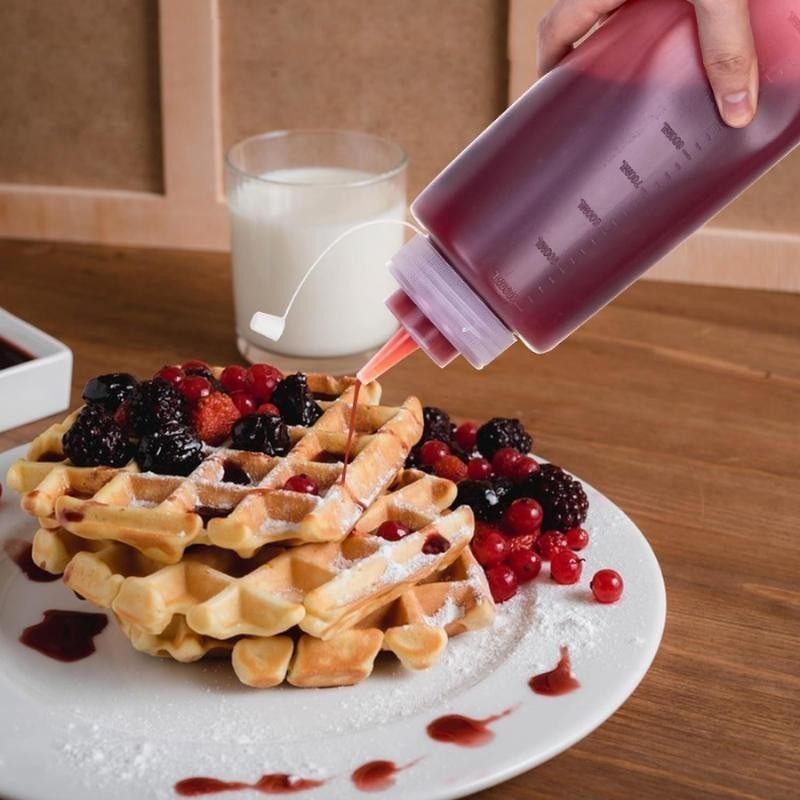 Kit 2 Bisnagas Grandes 1 Litro Para Molhos Panqueca com Tampa Plastica